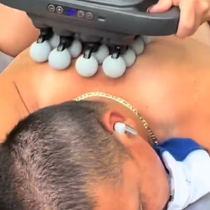 Sixteen synchronized heads move in continuous cycles, creating a smooth, full-coverage rhythm that eases tension across larger areas and encourages deeper release.