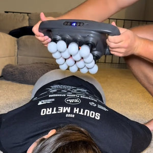 Yes. A massage gun taps on one small spot at a time. This works entire areas at once—your whole back, shoulders, or glutes. Instead of chasing tension point by point, you feel everything loosen together. It’s the difference between poking one knot and sinking into a full massage.